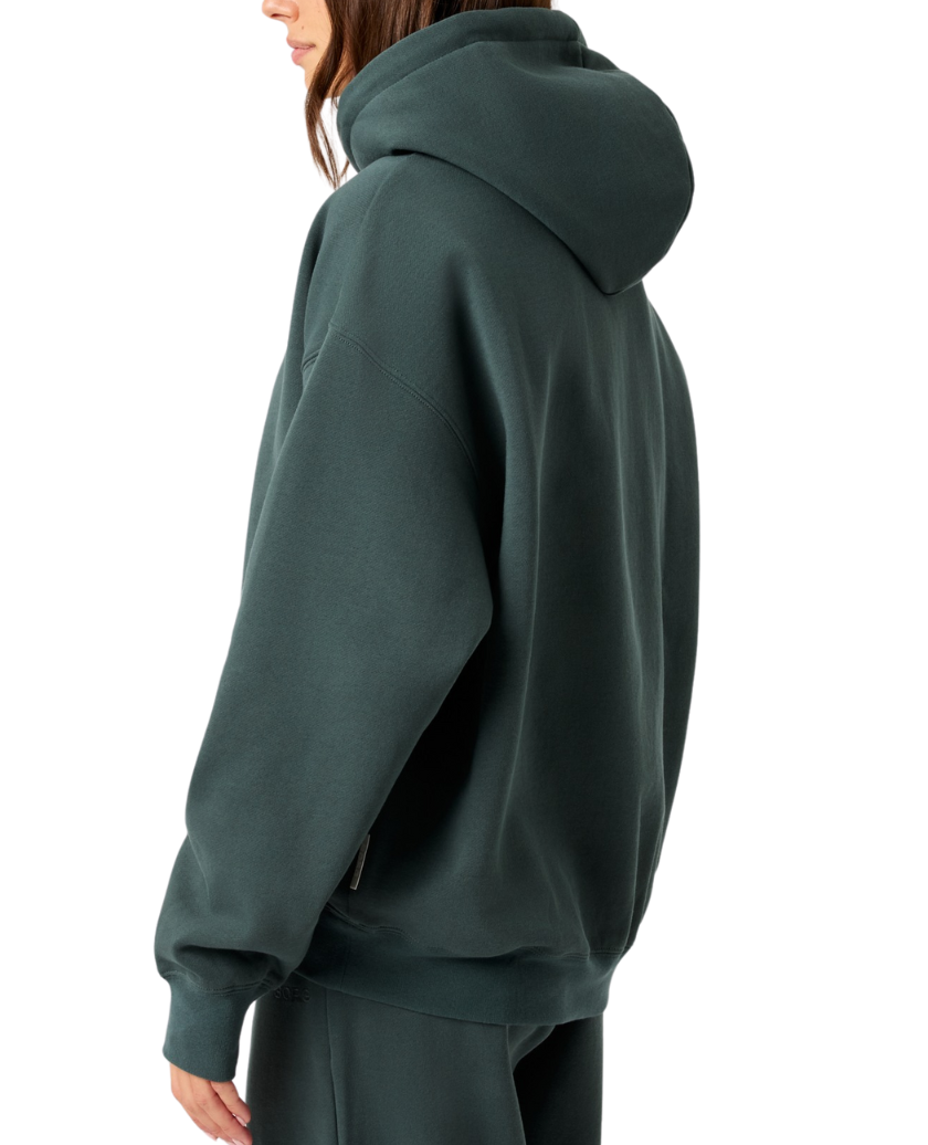 Stay comfortable and stylish in the studio oversized hoodie. Crafted from a blend of organic cotton and recycled polyester, this green hoodie features a relaxed fit with dropped shoulders for effortless layering. The crew neck design ensures everyday versatility, making it perfect for casual days or laid-back outings.