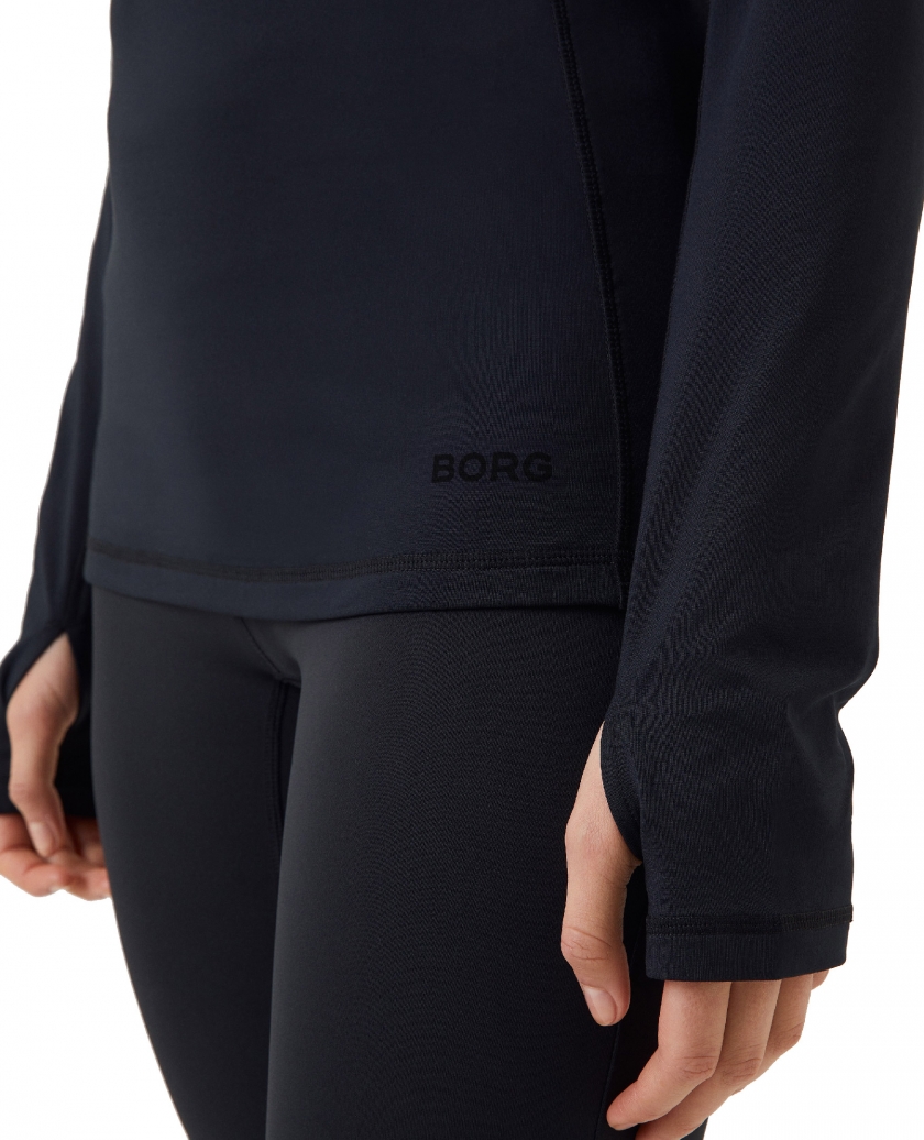 The Björn Borg Sthlm Midlayer is an ideal training midlayer made from soft recycled polyester stretch quality fabric. It comes in a slim fit and features a half-zip at the front, thumb hole openings on the sleeves for added warmth, and reflective prints on the sleeve. The model is 173cm tall and is wearing a size S.
