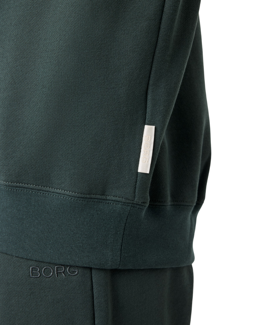Stay comfortable and stylish in the studio oversized hoodie. Crafted from a blend of organic cotton and recycled polyester, this green hoodie features a relaxed fit with dropped shoulders for effortless layering. The crew neck design ensures everyday versatility, making it perfect for casual days or laid-back outings.