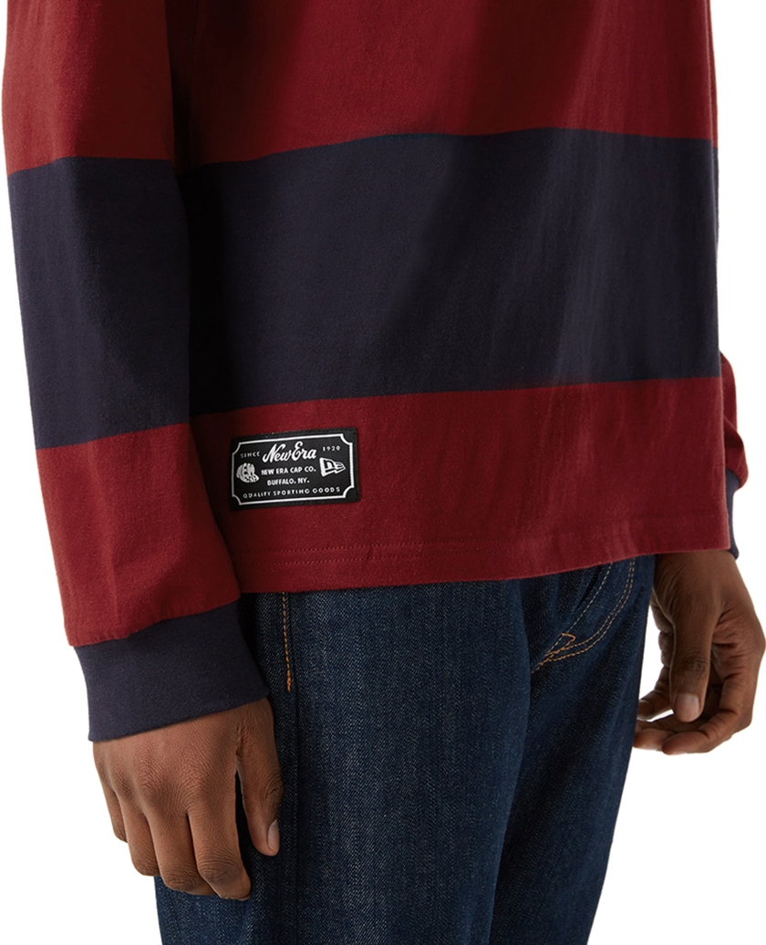 Zakoračite u stil inspirisan sportom sa zvaničnom New Era Heritage Hot Red Rugby majicom. Izrađena u prugastoj crvenoj i tamnoplavoj boji, pamučna majica ima prepoznatljivu zlatnu New Era zastavicu na levoj strani grudi. Oštra kragna upotpunjuje izgled.